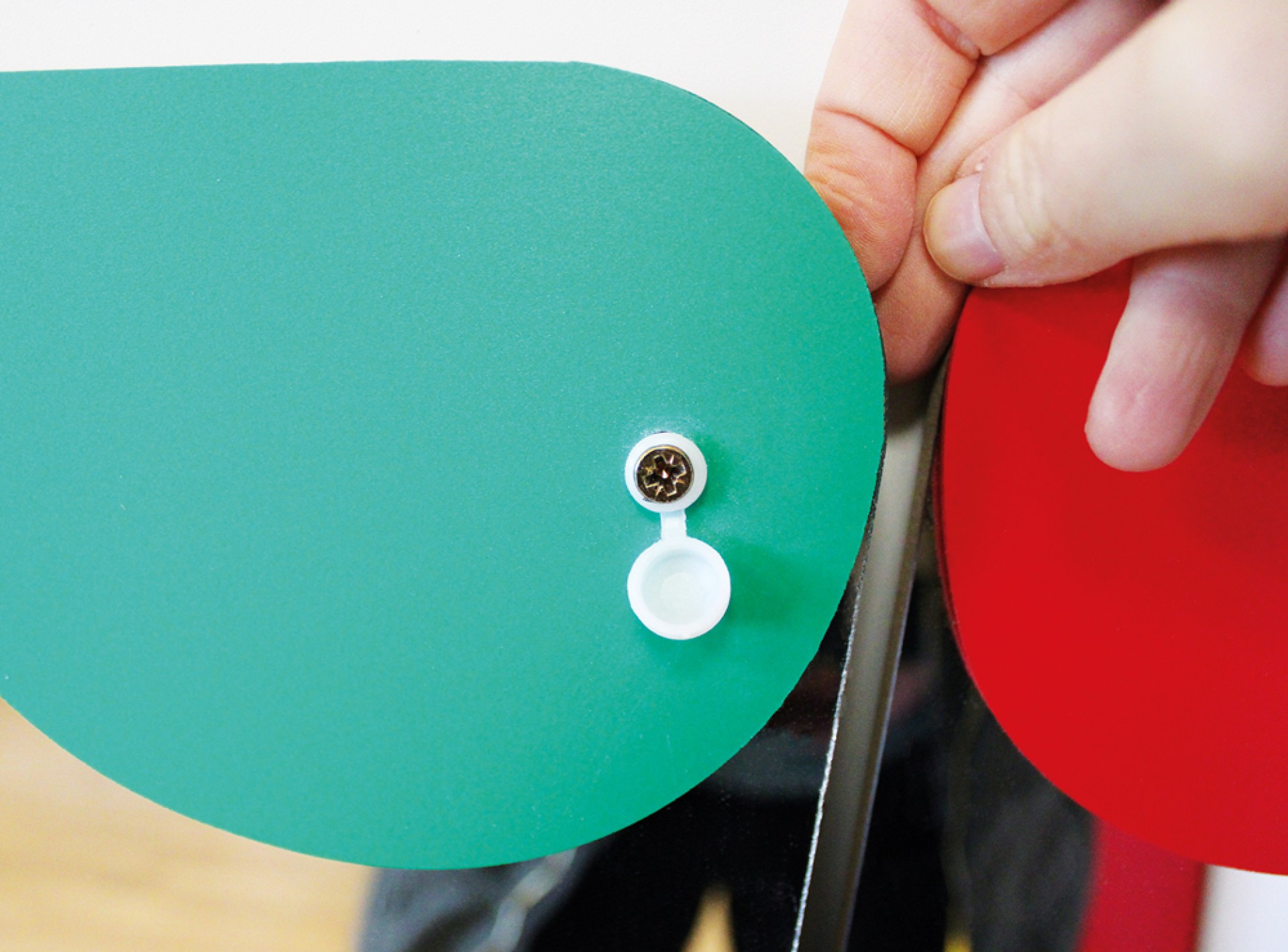 Inklusive: Schrauben, Schraubenabdeckung und Dübel zum Aufhängen an der Wand.