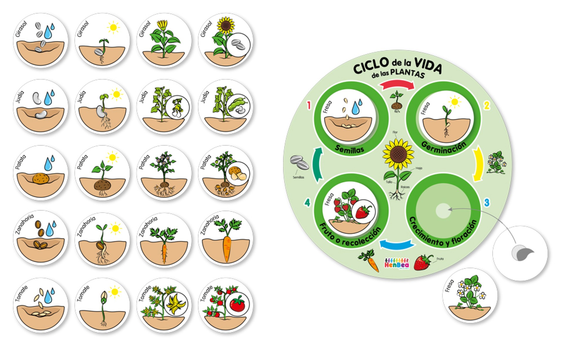• Comprender las etapas del ciclo de vida de una planta: semilla, germinación, crecimiento/floración y fruto/recolección.