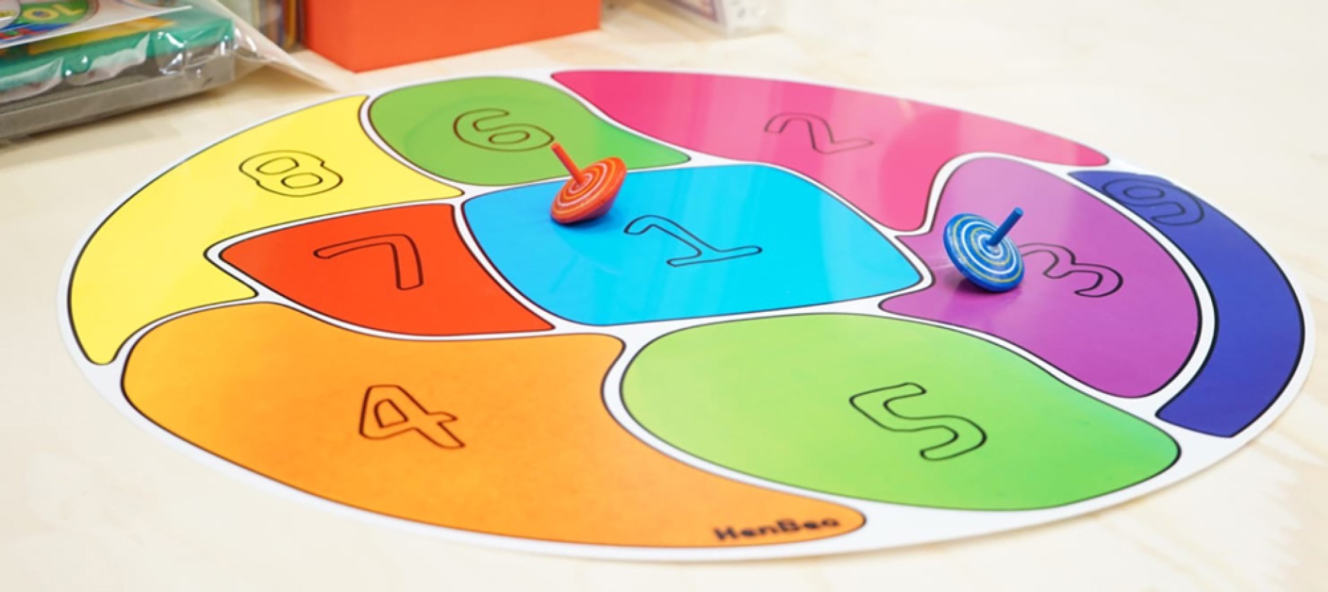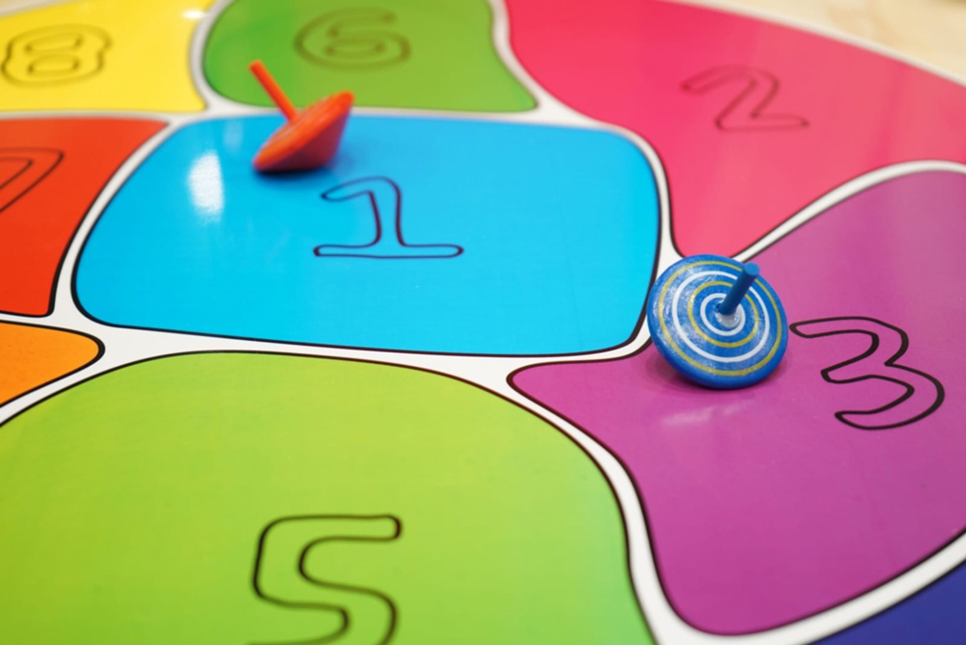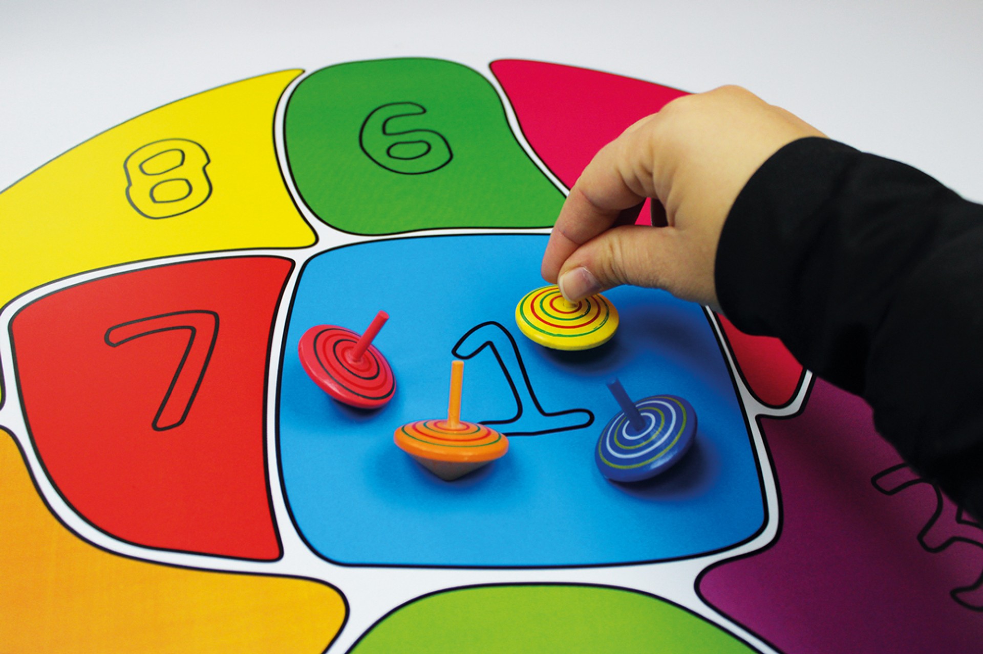 Un jeu actif et passionnant qui combine la coordination de la rotation d'une toupie avec le calcul mental!